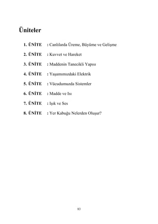 ĐLKÖĞRETĐM FE VETEK OLOJĐ DERSĐ ÖĞRETĐM PROGRAMI