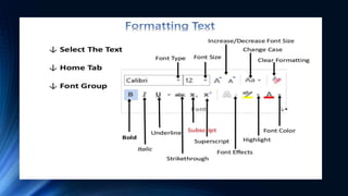 Microsoft Word is word processing software that allows users to create a variety of documents. It has features like tables, illustrations, fonts, and formatting tools. Documents can be opened, saved, printed, and shared. The ribbon interface contains tabs for common tasks like inserting objects, formatting text, and manipulating paragraphs. Users can also search and replace text, add page borders, and insert watermarks.