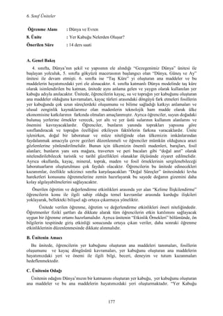 kabuğu adıyla anılacaktır. Ünitede, öğrencilerin kayaç, su ve toprağın yer kabuğunu oluşturan