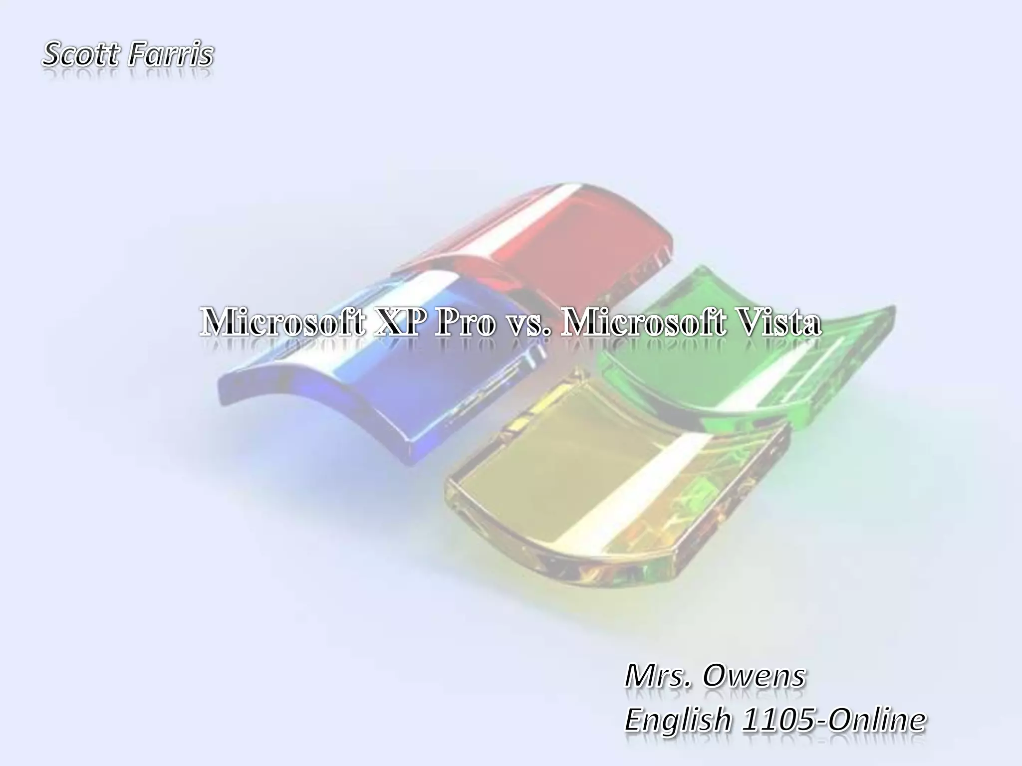 The document compares the compatibility and functionality of Windows XP and Windows Vista in a corporate environment. Various software applications were installed on virtual machines running each operating system. Most applications like antivirus software and Microsoft Office installed successfully on both. However, the Novell client central to network access and file sharing at the author's job installed on XP but not Vista. Due to this incompatibility with a critical program, the document recommends Windows XP over Vista for stable use in business environments.