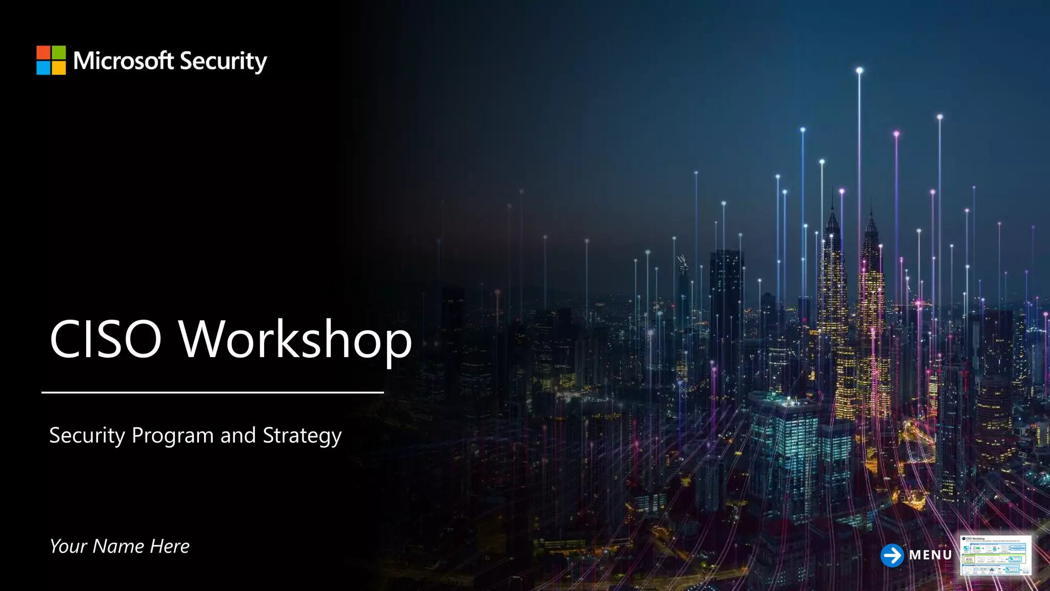 The document discusses a CISO workshop agenda to modernize a security strategy and program. It includes: