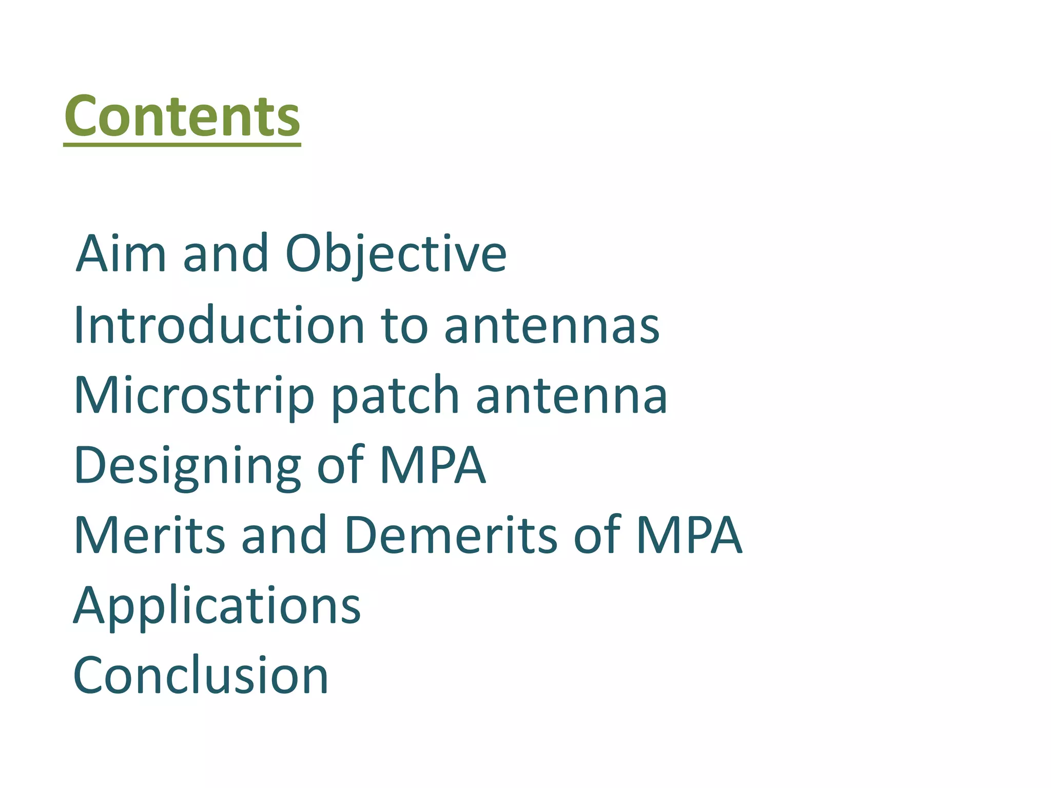The document discusses the design of a microstrip patch antenna (MPA) resonating in the K-band frequency range (18-26GHz) using HFSS software. It provides an introduction to antennas and describes the basic structure of an MPA including the radiating patch, dielectric substrate, and ground plane. Design considerations for the MPA include selecting the rectangular patch shape and FR4 epoxy substrate material. The document outlines the design process in HFSS and lists some advantages and applications of MPAs for mobile/satellite communication systems. It concludes that the designed MPA exhibits good impedance matching at the center frequency and can be easily fabricated on an FR4 substrate.