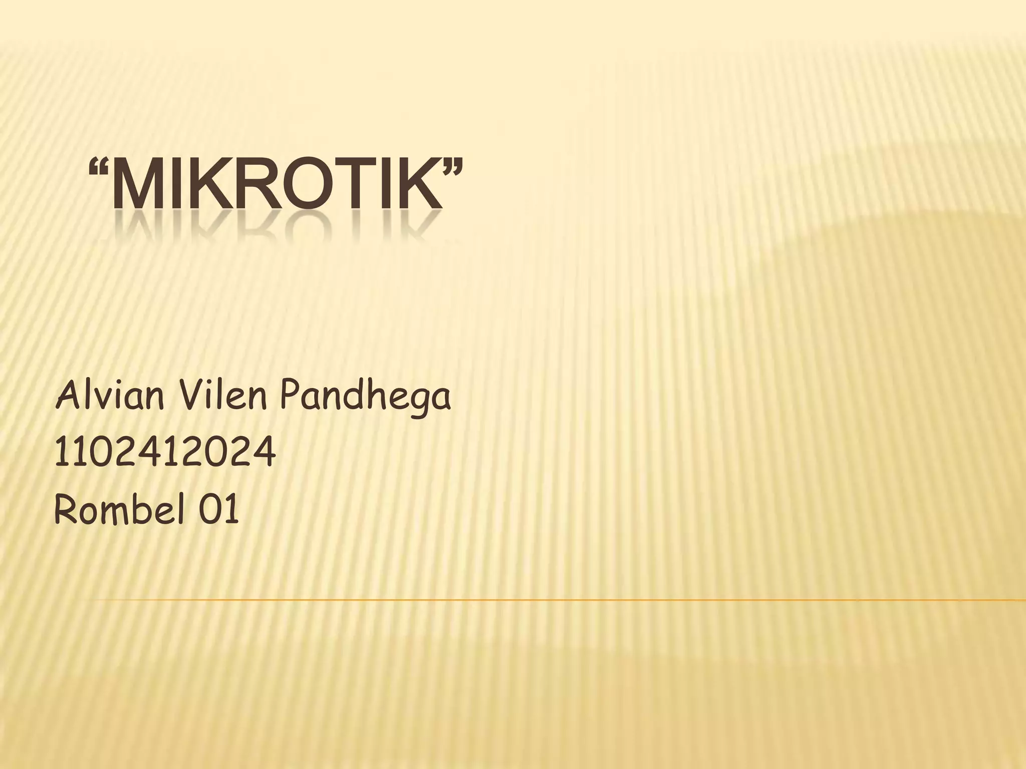 MIKROTIK merupakan sistem operasi dan perangkat lunak yang dapat mengubah komputer menjadi router. Mikrotik hadir dalam bentuk perangkat keras maupun perangkat lunak yang dapat diinstal pada komputer. Mikrotik memiliki berbagai fitur seperti routing, firewall, quality of service, dan lainnya sehingga sangat berguna untuk pengaturan jaringan.