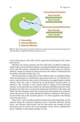 1) Microwave extraction works through heat and mass transfer mechanisms that allow for faster extraction compared to conventional methods. Heat is generated inside the extraction medium through dipole rotation and ionic conduction when subjected to an electromagnetic field.