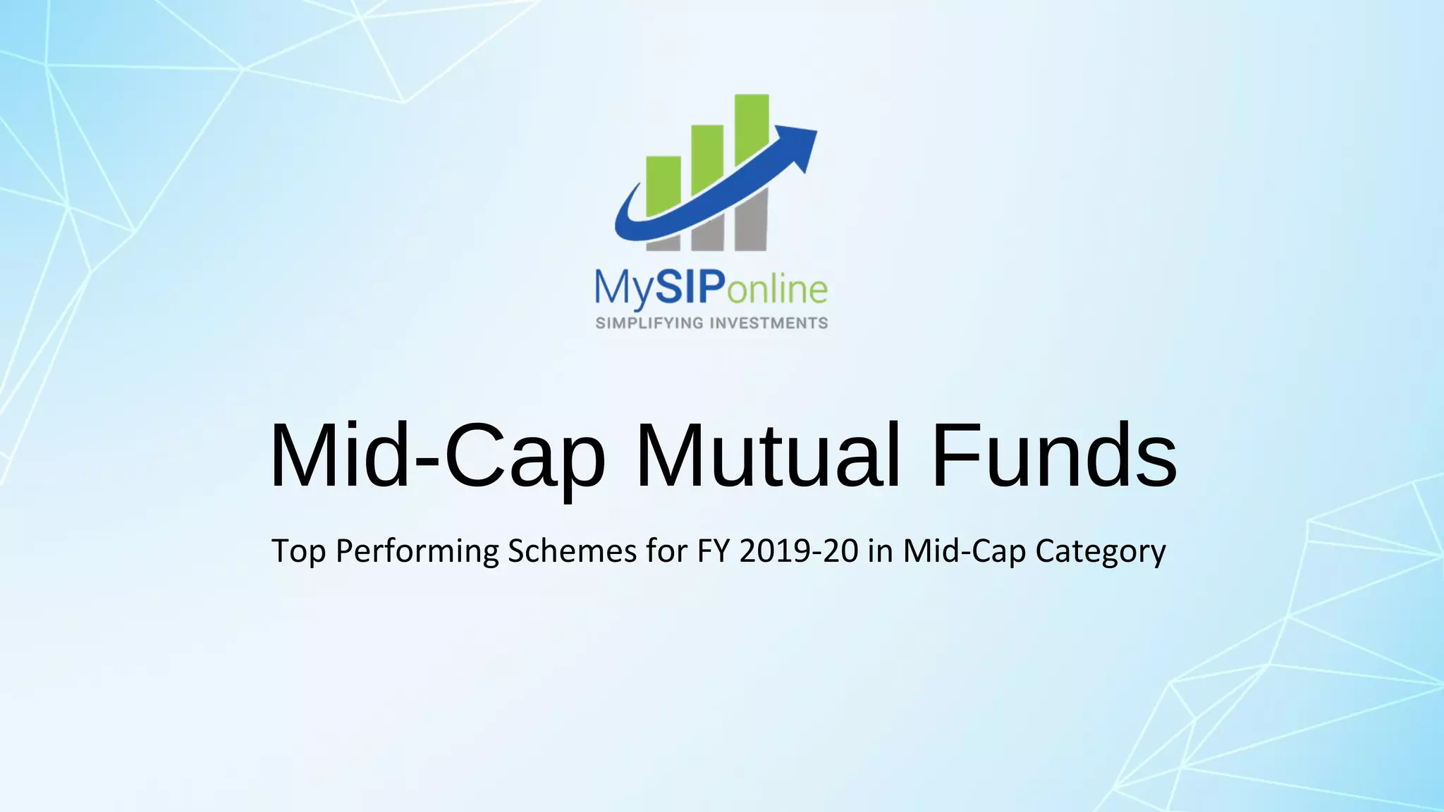 The document discusses mid-cap mutual funds, which invest in equities of mid-cap companies (ranked 100th to 251st by market capitalization) and have the potential for higher returns despite higher risks. It lists top-performing funds for FY 2019-20, including L&T Midcap Fund, DSP Midcap Fund, and Invesco India Mid Cap Fund, providing details on their performance and metrics. It advises investors seeking long-term capital gains to consider these funds, but warns that conservative or short-term investors should avoid them.