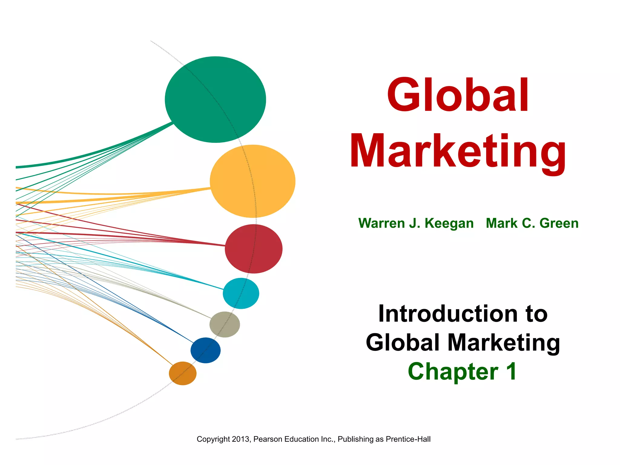 This document provides an overview of global marketing concepts. It defines global marketing as marketing activities that take place outside a company's home country market. It discusses the differences between standardization and adaptation approaches in global marketing strategy and product development. It also outlines different orientations companies can take in their global management, including ethnocentric, polycentric, regiocentric, and geocentric. Forces that both enable and restrain global integration are discussed.