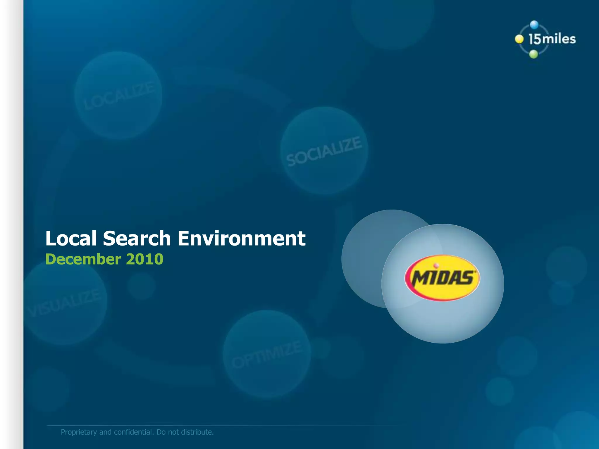 This document discusses local search marketing strategies. It notes that consumers use multiple sources for local business information, including search engines, local search sites, and yellow pages. Search engines are the primary source for auto repair information online. Both organic search engine optimization (SEO) and paid search provide benefits and work best together. A competitive analysis shows gaps in local listings and information for auto repair chains. The document advocates developing complete local business listings on Google Places and other directories to improve local search visibility and drive more customers.
