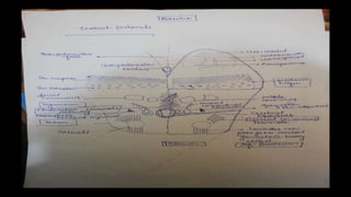 The midbrain connects the hindbrain and forebrain. It is involved in vision, hearing, motor control and other functions. The midbrain contains several structures including the tectum, tegmentum, cerebral peduncles, cerebral aqueduct, superior and inferior colliculi, substantia nigra and red nucleus. It also contains nuclei associated with cranial nerves III, IV, V and VI. Sensory and motor tracts pass through the midbrain connecting different parts of the brain and spinal cord.