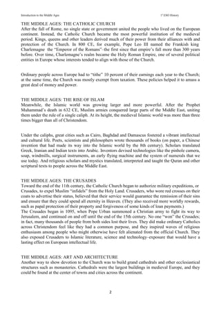 The document provides an overview of life in medieval Europe between the 5th and 15th centuries. It describes this era as complex and vibrant, not a "dark age" as previously portrayed. Key developments included the rise of the Catholic Church as the most powerful institution, the expansion of Islam and its contributions to science, and the Crusades launched by the Church. Architecture like Romanesque and Gothic cathedrals expressed religious devotion, while feudal systems and growing trade in cities began transforming rural economies and societies. An outbreak of plague in the 14th century killed around 30% of Europe's population and helped usher in the Renaissance.