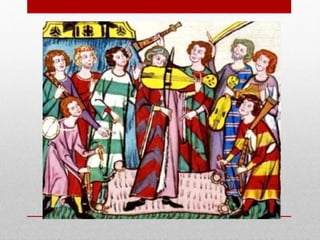 This document provides an overview of Western music history from ancient times to the Renaissance period. It describes the types of music from ancient Greek, Roman, and Middle Eastern cultures. In the Middle Ages, music was mostly monophonic Gregorian chant sung in monasteries. In the Renaissance period, music developed into sacred polyphonic masses and secular motets, songs, and dances. Composers such as Palestrina, Byrd, Josquin des Prez, and Monteverdi wrote music for both the church and secular patrons.