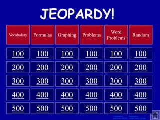 This document appears to be a transcript of a game of Jeopardy containing various math and science questions and answers. Some sample questions include what is an improper fraction, what does PEMDAS mean, what is the slope-intercept formula, and what is 10% of 200. The responses provide the correct answers to each question, such as "improper fraction", "P=parentheses, E=exponents, etc.", "Y=mx+b", and "20".