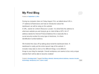 This document contains a summary of two WordPress blogs that the author enjoyed learning from as it showed how much they have grown in learning WordPress. It also includes an organized folder structure and an example of red eye removal with a link to a Google image search on the topic.