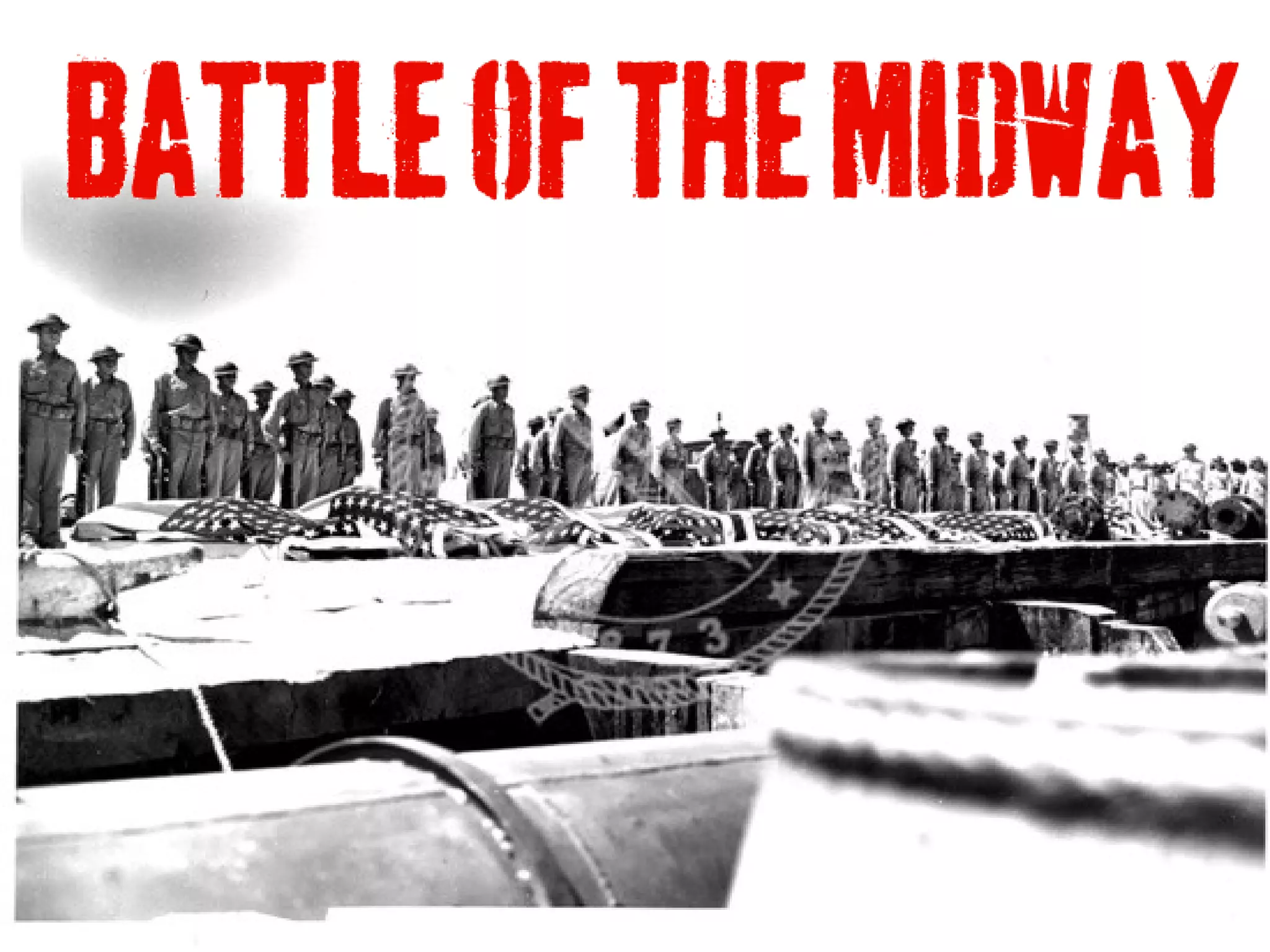 The Battle of Midway took place from June 4-7, 1942 at the US Mid-Pacific base at Midway atoll between the Japanese and US Pacific fleets. The Japanese planned to capture Midway to destroy the US Pacific Fleet, but the US anticipated this due to code breaking and launched a surprise attack, sinking four Japanese aircraft carriers and defeating their planes. This resulted in an Allied victory that marked a major turning point in the Pacific War against Japan.