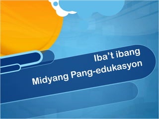 Ang midyang pang-edukasyon ay tumutukoy sa iba't ibang kagamitang pangkomunikasyon gaya ng telebisyon, sine, radyo, at prodyektor na ginagamit sa pagtuturo at pag-aaral. Ang mga ito ay nagbibigay ng mahusay na paraan para sa mga mag-aaral na matuto, lumawak ang kanilang kaalaman, at paunlarin ang kani-kanilang kasanayan. Kabilang dito ang makabagong teknolohiya tulad ng multimedia players at interactive whiteboards na nag-aambag sa mas moderno at mas kapana-panabik na karanasan sa pagkatuto.