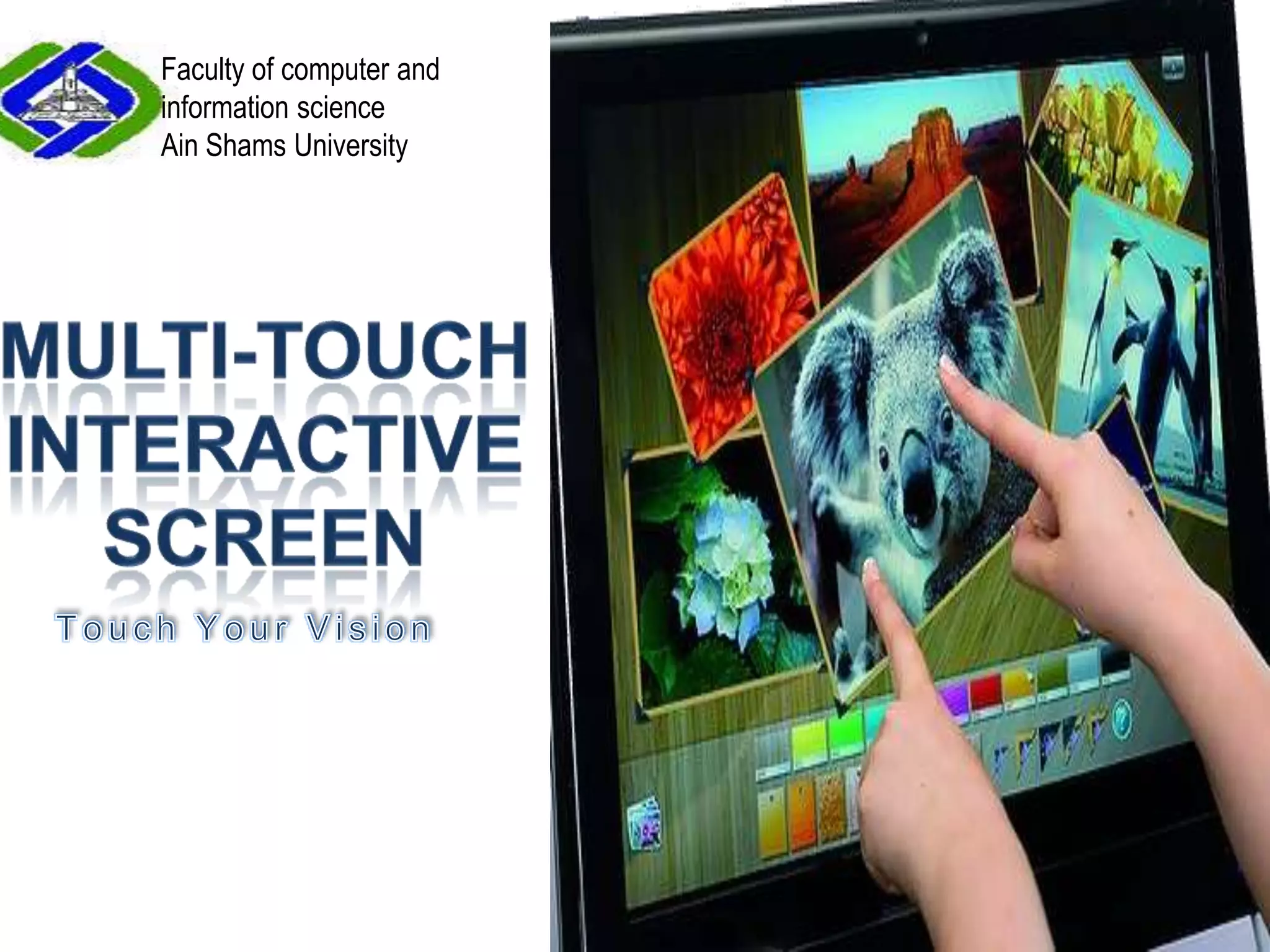 The document outlines the development of a multi-touch interactive screen system that uses human-computer interaction through gesture recognition, aiming to eliminate the need for conventional input devices. It discusses the system's framework, components, applications, limitations, and future enhancements such as multi-user capability and advanced body tracking. References to various research and existing technologies are included to support the project's foundation and goals.