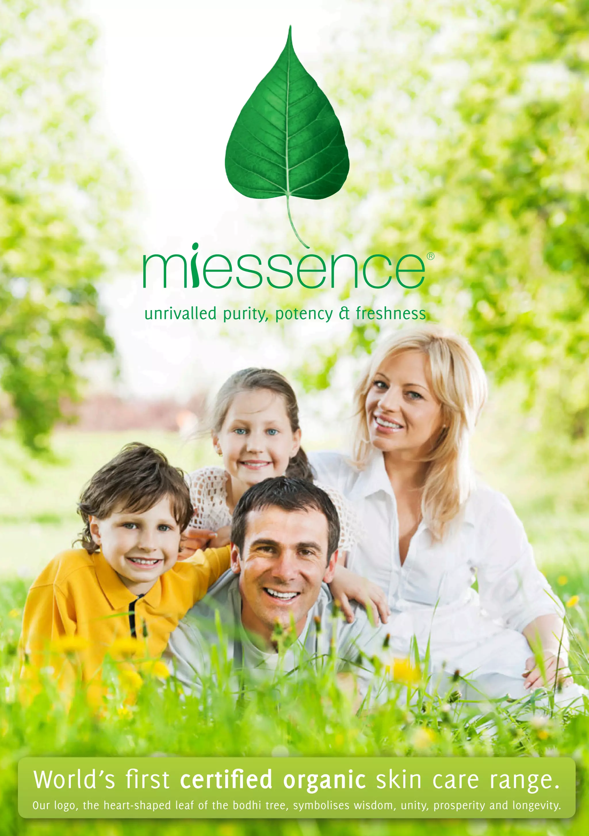 The document summarizes Miessence, a skin care brand that uses only natural and organic ingredients. It discusses their philosophy of using ingredients that are beneficial to the body and in harmony with nature. The document also provides details on their certifications and challenges other brands' claims of being natural and organic.