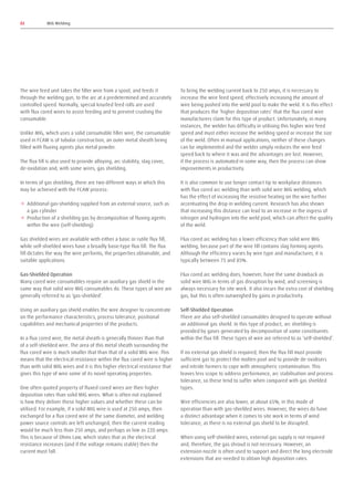 MIG welding uses a continuous electrode wire fed through a welding gun to create an electric arc between the tip of the wire and the weld pool. An inert gas shield protects the molten weld from atmospheric contamination. There are two main types - gas-shielded MIG which uses a solid wire and an external gas shield, and self-shielded flux cored arc welding which uses a tubular wire filled with flux that generates its own gas shield without external gas. The document provides details on the operation, advantages, and limitations of each type of MIG welding.