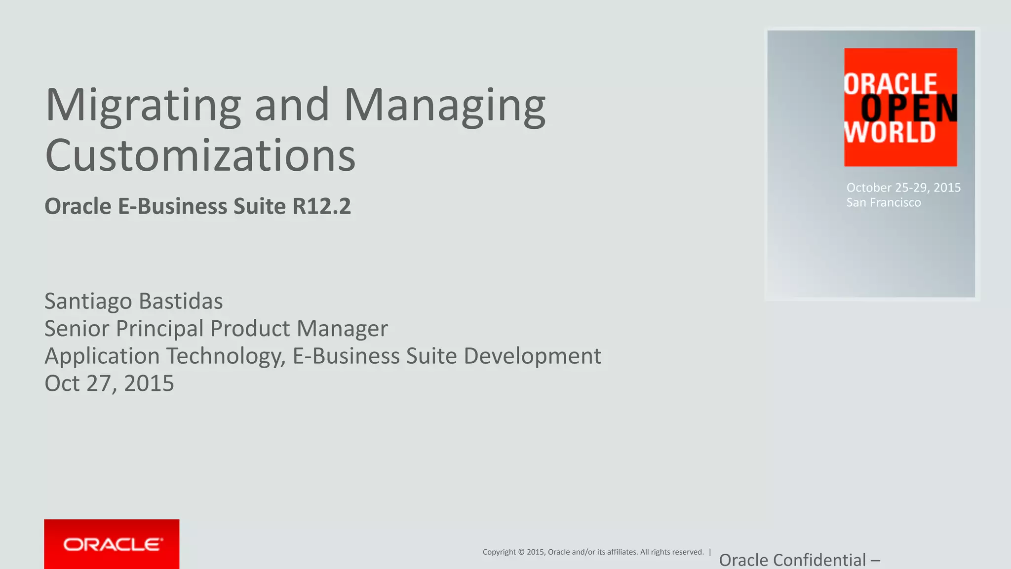The document outlines the key considerations and processes for migrating and managing customizations during the upgrade from Oracle E-Business Suite 12.1 to 12.2. It details essential standards compliance requirements for online patching, the development of a customizations catalog, and the importance of pre-upgrade project preparation. Additionally, the upgrade process is structured around enabling online patching and ensuring that custom schemas meet specific compliance metrics to streamline future updates.