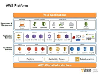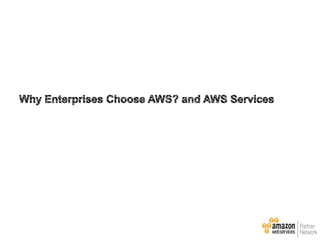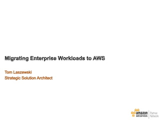 This document provides an overview of why enterprises choose AWS and best practices for migrating applications to AWS. It discusses AWS design principles like designing for failure and implementing elasticity. It also covers topics like calculating total cost of ownership, customer migration lessons learned, and next steps to optimize applications in AWS.