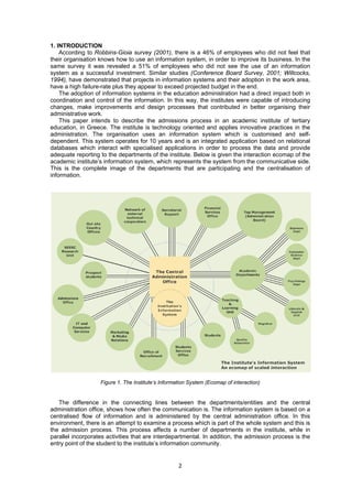 2) It analyzes the admissions process and information flow at an institute, finding issues like lack of knowledge sharing between departments and poor reporting.
