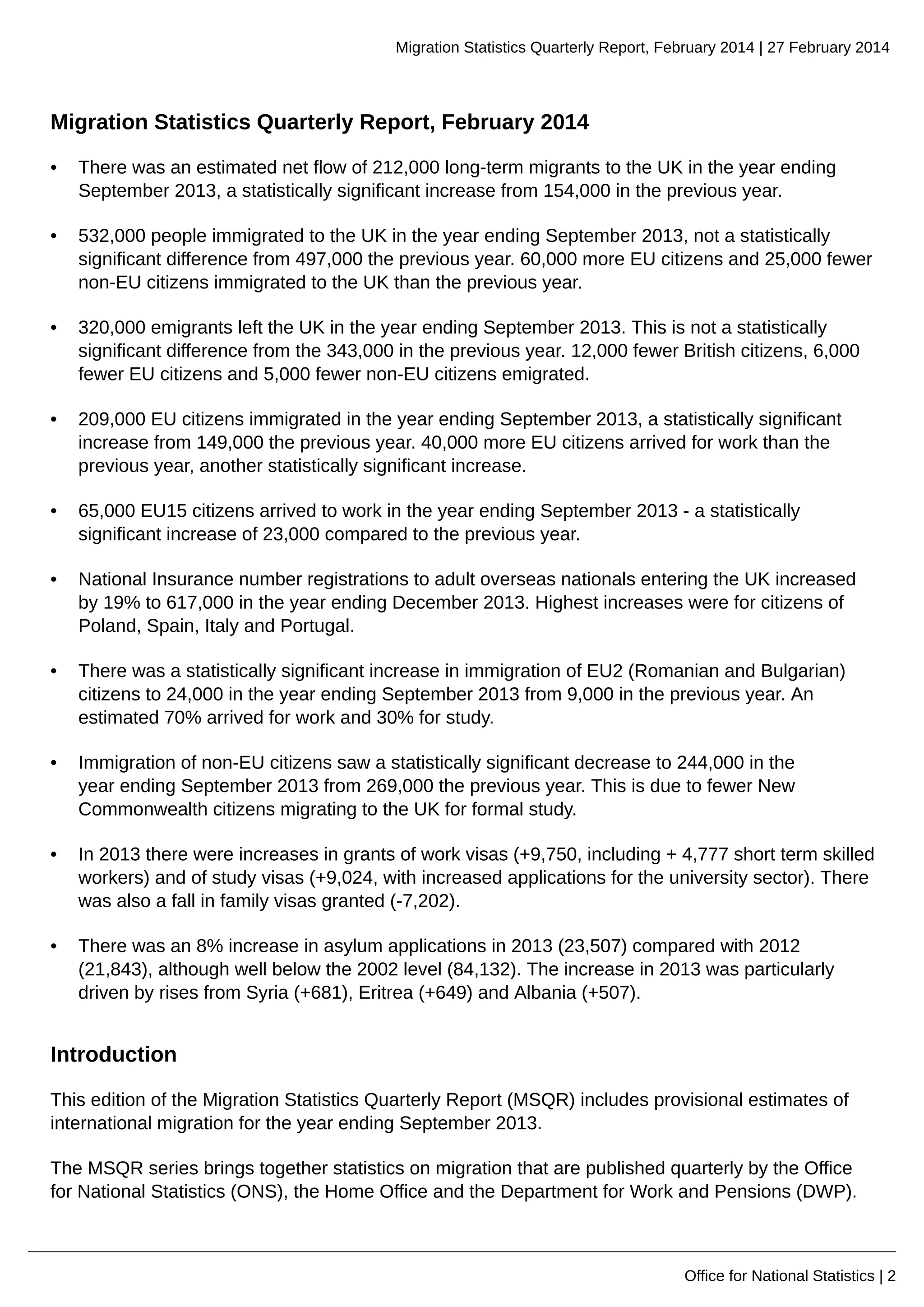 1. Provisional estimates show net migration increased to 212,000 in the year ending September 2013, up from 154,000 previously. Both immigration and emigration saw small increases/decreases.