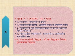 • ५. स्थलांतरासंबंधी सिद्धांत - ली चा सिद्धांत व रिलेचा
