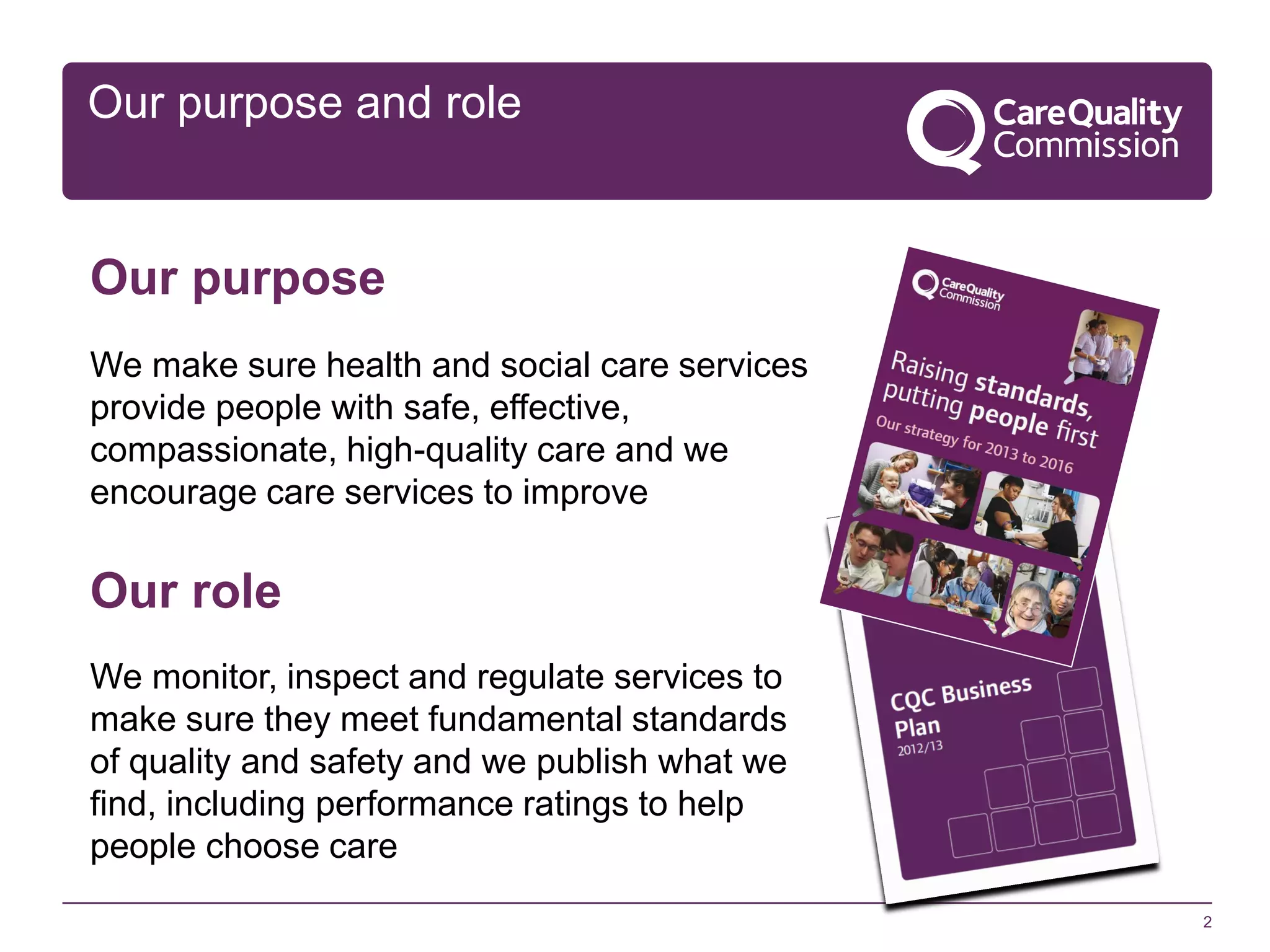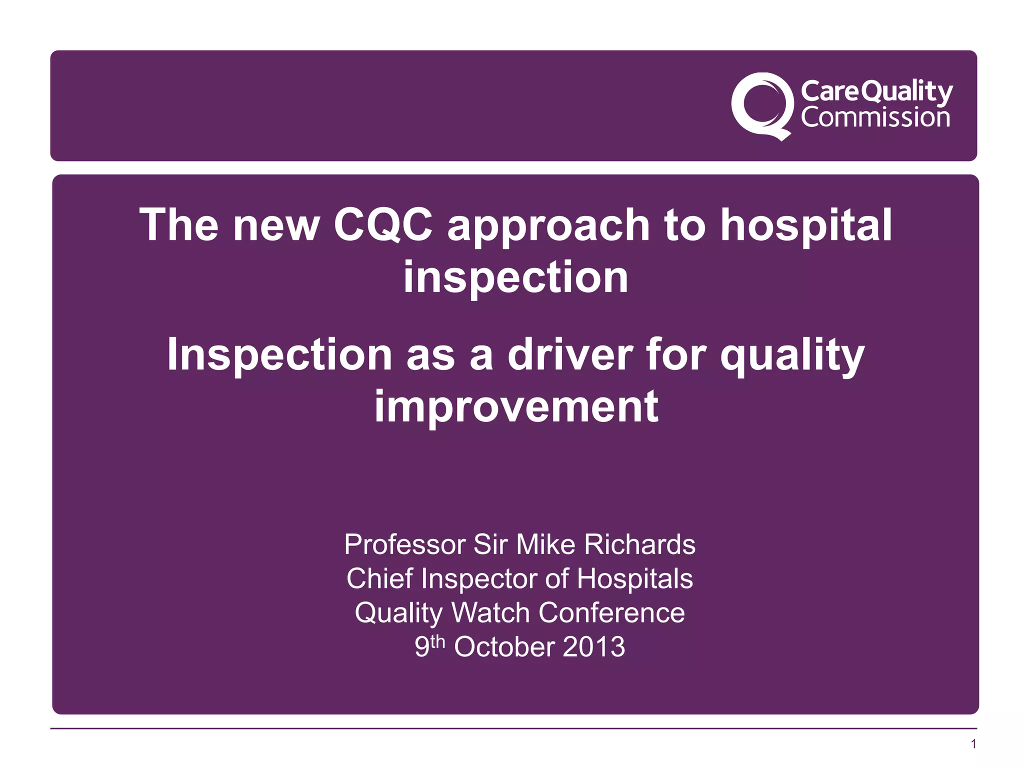 1. The CQC has developed a new approach to inspecting hospitals that involves a 3 phase process of preparation, site visits, and reporting.
