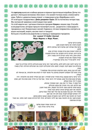 На этой неделе дети изучали недельную главу Микец, связанную со снами фараона и интерпретацией этих снов Йосефом. Также были проведены занятия по творчеству и математике, приуроченные к празднику Ханука, который с родителями отпраздновали в саду. Дети изготовили поделки и принимали участие в подвижных играх.