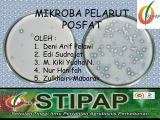 Mikroba pelarut fosfat (MPF) adalah mikroorganisme yang dapat melarutkan fosfat anorganik tanah menjadi bentuk yang dapat diserap tanaman. MPF terdiri atas bakteri dan fungi pelarut fosfat yang umumnya berada di tanah dekat akar tanaman. MPF melarutkan fosfat melalui ekskresi asam organik atau enzim fosfatase dan fitase. Isolasi MPF dapat dilakukan dari tanah miskin fosfat dengan metode cawan petri