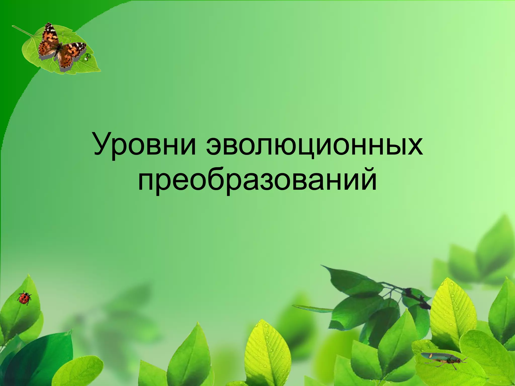 Документ описывает уровни эволюционных преобразований, включая микроэволюцию и видообразование, критически рассматривая различные критерии определения видов, такие как морфологические, физиологические и экологические. Он также исследует процессы макроэволюции, включая дивергентную и конвергентную эволюцию, а также биологический прогресс и регресс. В заключение, обсуждаются последствия изменений в экосистемах и факторы, ведущие к исчезновению видов.