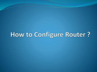 A computer network connects computers together to share resources like internet access. A router receives and directs packets between networks and may convert between network types. The document then discusses configuring a MikroTik 951g-2hnd router by connecting it to a laptop, using Winbox software to add a WAN IP and default route, enable wireless and add a password, create a DHCP server, and configure NAT, NTP, and ports. Finally, the computer's IP is changed to automatic and ping tests are done to the Google DNS to confirm the basic router configuration.