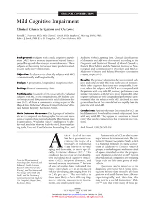This document summarizes a study characterizing patients with mild cognitive impairment (MCI) both cross-sectionally and longitudinally. The study found that: