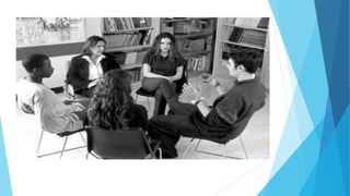 Milieu therapy is a scientific approach to structuring the environment to effect behavioral changes and improve psychological health. It involves manipulating aspects of a client's surroundings, like their hospital experience, to be therapeutic. The goal is for clients to learn adaptive coping skills, interpersonal skills, and stress management techniques that can generalize to other areas of their lives, ultimately achieving autonomy. Nurses play an important role in milieu therapy by helping design therapeutic physical environments, coordinating teams, and facilitating trust-building discussions.