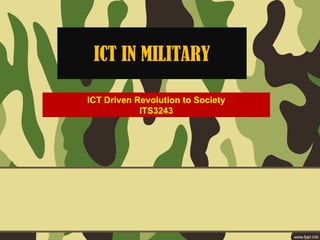 ICT has transformed the military from dumb bombs to smart weapons, people-centric to network-centric battlefields, and hardware-based to software-based forces. Key changes include weapons that can now communicate and precisely target specific targets without collateral damage, real-time combat surveillance instead of after-action reviews, use of unmanned aerial vehicles and satellites for reconnaissance, and software replacing hardware as the primary force multiplier. ICT has revolutionized modern warfare and military operations.