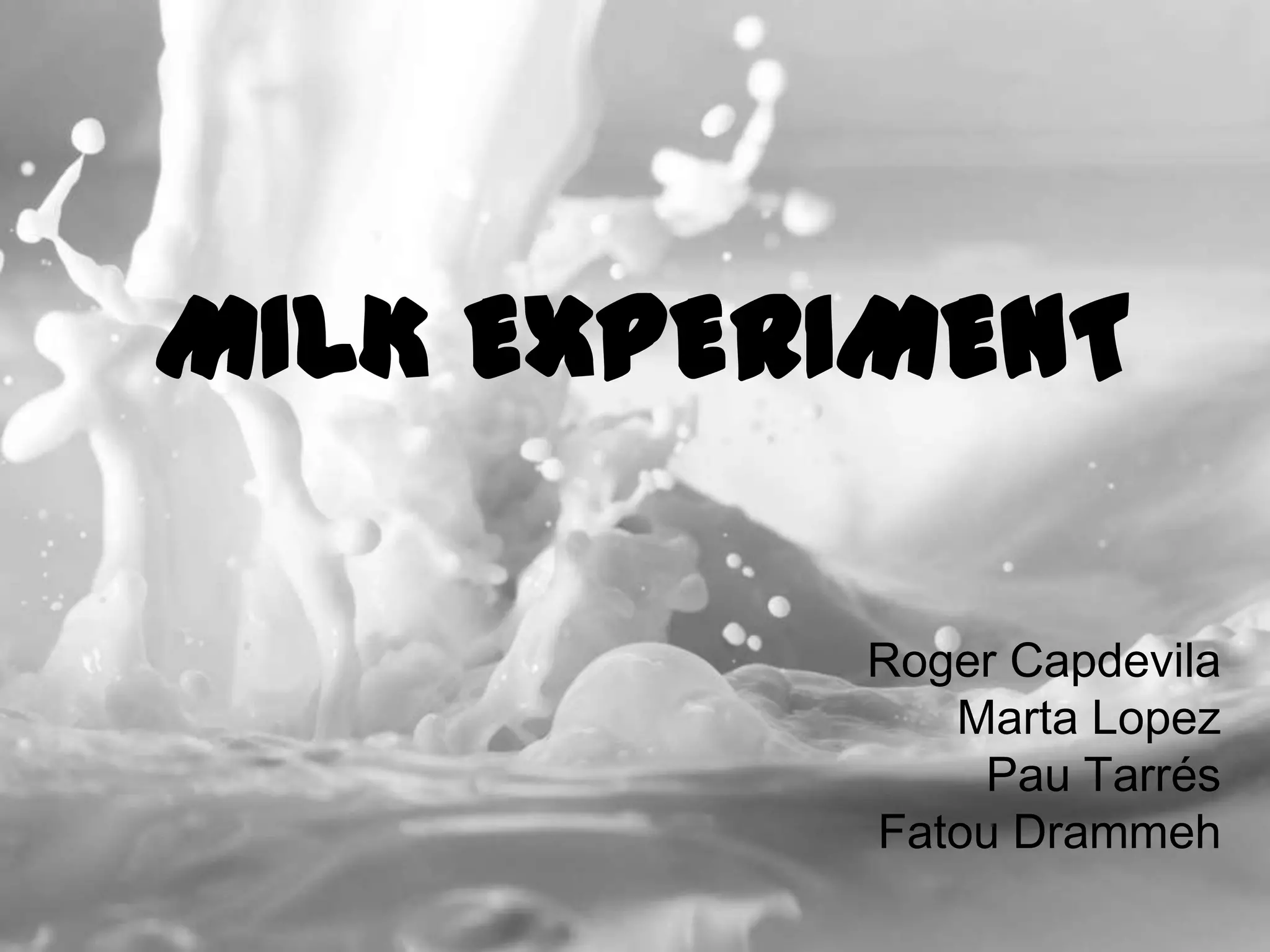 The document describes an experiment involving milk. It lists four students and materials including a beaker and flask. The method involves pouring 100ml of hot milk into a flask, adding acetic acid to the hot milk, and mixing the hot milk and acetic acid.