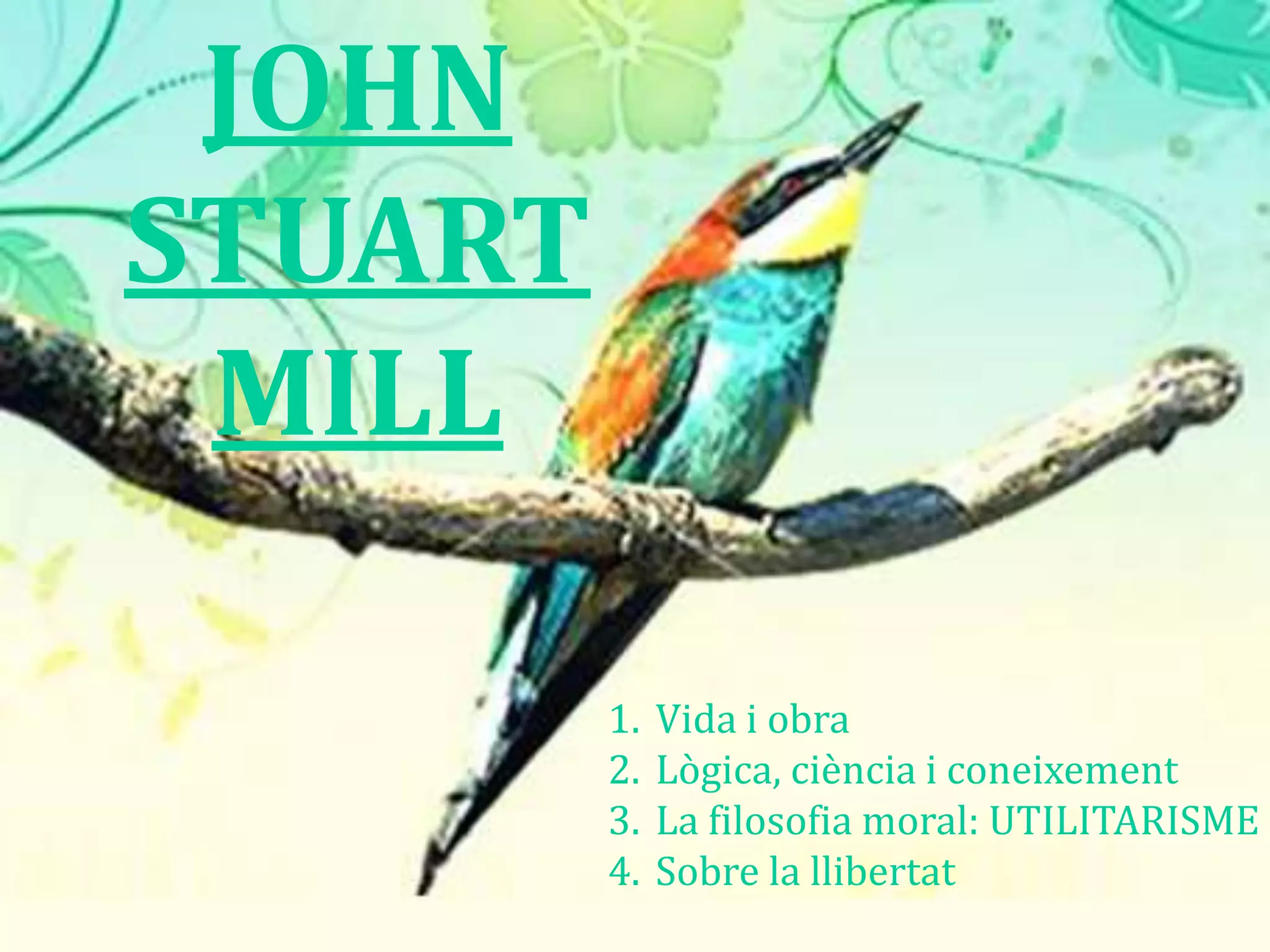 JOHN STUARTMILLVida i obra Lògica, ciència i coneixementLa filosofia moral: UTILITARISMESobre la llibertat