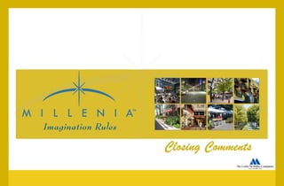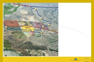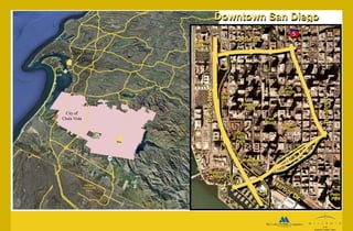 The document summarizes the plans for developing the Eastern Urban Center, an 80 city block urban core in Chula Vista. It will include up to 3,000 multifamily homes, 300,000 square feet of retail and commercial space, and acres of parks and public spaces. The development aims to be a walkable, mixed-use district with sustainable design and public transportation integration.