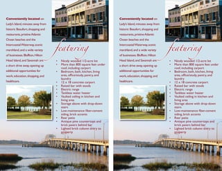 This document describes a property for sale located at 15 Miller Drive West in Beaufort, South Carolina on Lady's Island for $139,000. The property includes a nicely wooded half-acre lot with over 800 square feet including a bedroom, bathroom, kitchen, living area, office/study, pantry, laundry area, and a 12x18 concrete carport. The home features a vaulted ceiling, raised bar, electric range, tankless water heater, and storage above with drop-down stairs.