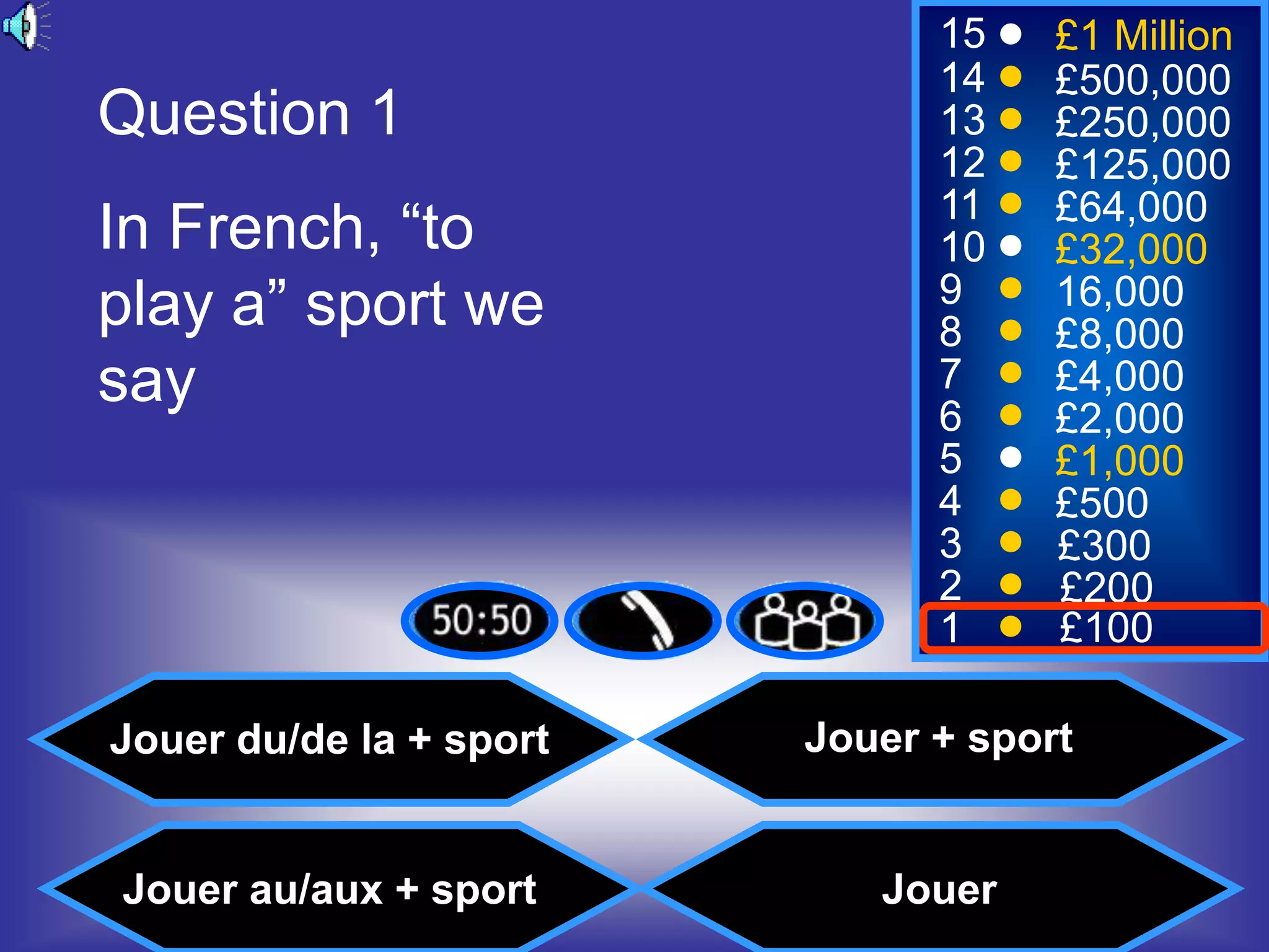 The document contains questions and answers in French about playing sports and musical instruments. It tests knowledge of prepositions like "de", "du", "au", and "aux" used before nouns when discussing playing various sports and instruments in French. The questions cover topics like playing football, rugby, volleyball, piano, guitar, and not playing an instrument.