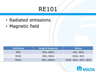 The document outlines regulations and standards for measuring radiated emissions in various military applications under MIL-STD-461, specifically focused on frequency ranges from 30 Hz to 40 GHz. It describes test parameters, equipment requirements, and methodologies for ensuring compliance with electromagnetic emission limits in systems used by the Army, Navy, Air Force, and other space systems. Key sections detail the differences in testing for different military branches and emphasize the importance of specific configurations and protocols during testing.
