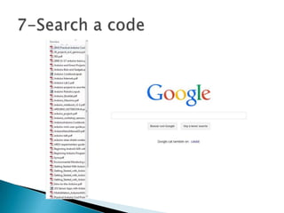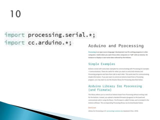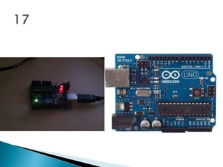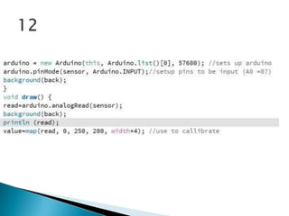 This code summarizes an Arduino sketch that blinks an LED by turning it on for one second and off for one second repeatedly. It defines an integer variable 'led' set to pin 13, which is connected to an LED on most Arduino boards. In setup, it defines pin 13 as an output. The main loop turns the LED on by setting pin 13 high for one second, then off by setting it low for one second, repeating indefinitely.