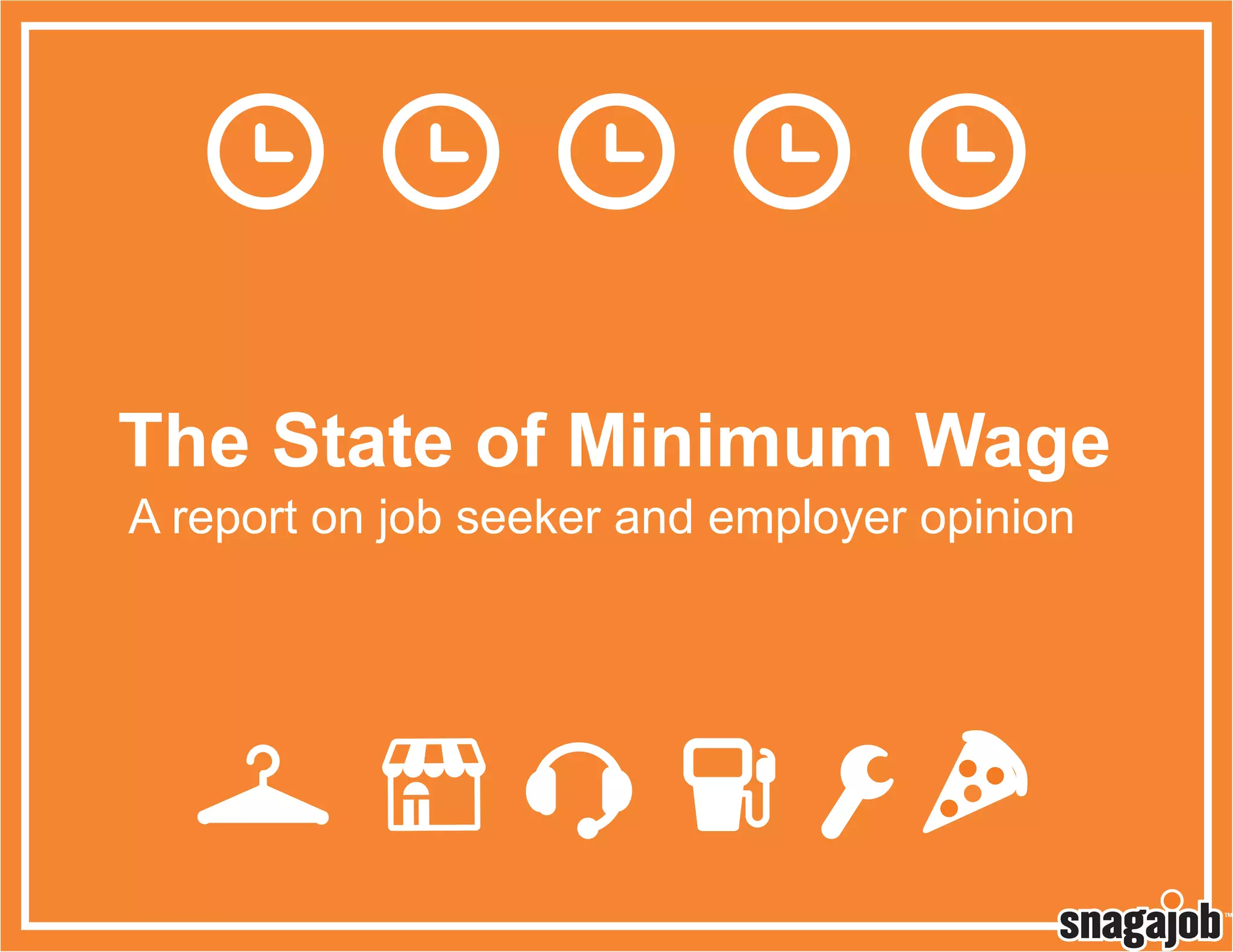 A report by Snagajob surveyed over 250 employers and 9,000 job seekers on federal minimum wage opinions. While 32% of employers support raising the minimum wage, 84% of job seekers favor an increase, with a common suggested new minimum of $9.00 per hour. Most employers express reluctance to automatic wage increases and indicate potential price increases or workforce reductions to offset higher wages.