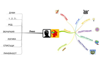 Семинар “Креативност и мисловни карти” – 9 май 2012 @ НЛП клуб България Какво представляват мисловните карти? Мисловните карти (mind maps) са естествен графичен инструмент, който ви дава възможност по креативен и организиран начин да изразите вашите мисли и идеи. Те помагат да отключите безкрайния креативен потенциал на мозъка. Мисловните карти могат да бъдат приложени във всеки един аспект от живота, където ефективност и яснота на мислене ще подобрят вашето представяне. http://nlpclub.devbg.org/2012/04/21/creativity-and-mind-mapping-seminar-9-may-2012/