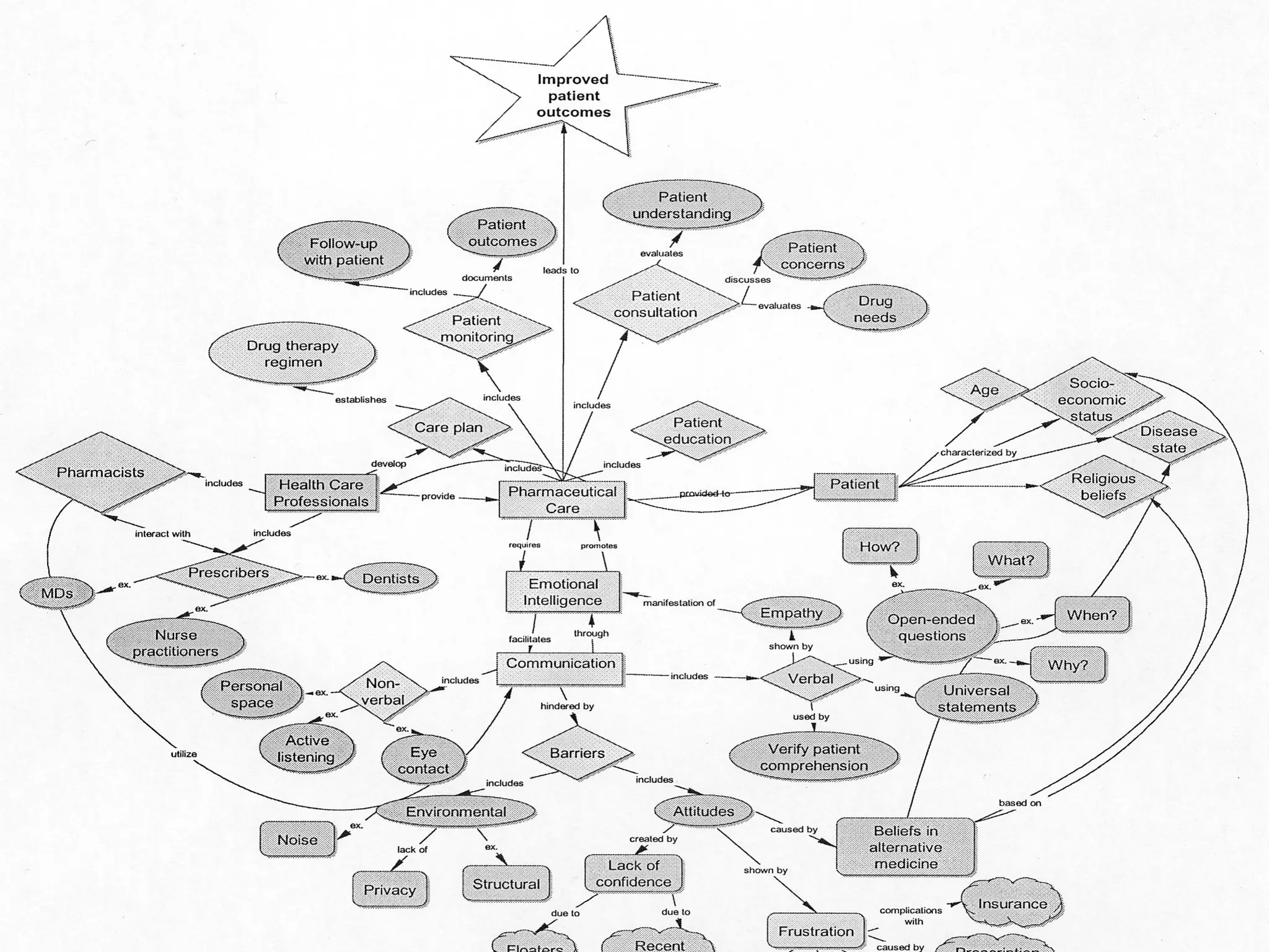 The document discusses the importance of mind mapping as a tool for pharmacy education and practice, highlighting its effectiveness in knowledge retention and understanding complex subjects. It emphasizes the benefits of using visual diagrams to organize information and foster meaningful learning among students, particularly in pharmacy communications courses. Additionally, it shares personal experiences and applications of mind mapping in both educational and patient education settings.