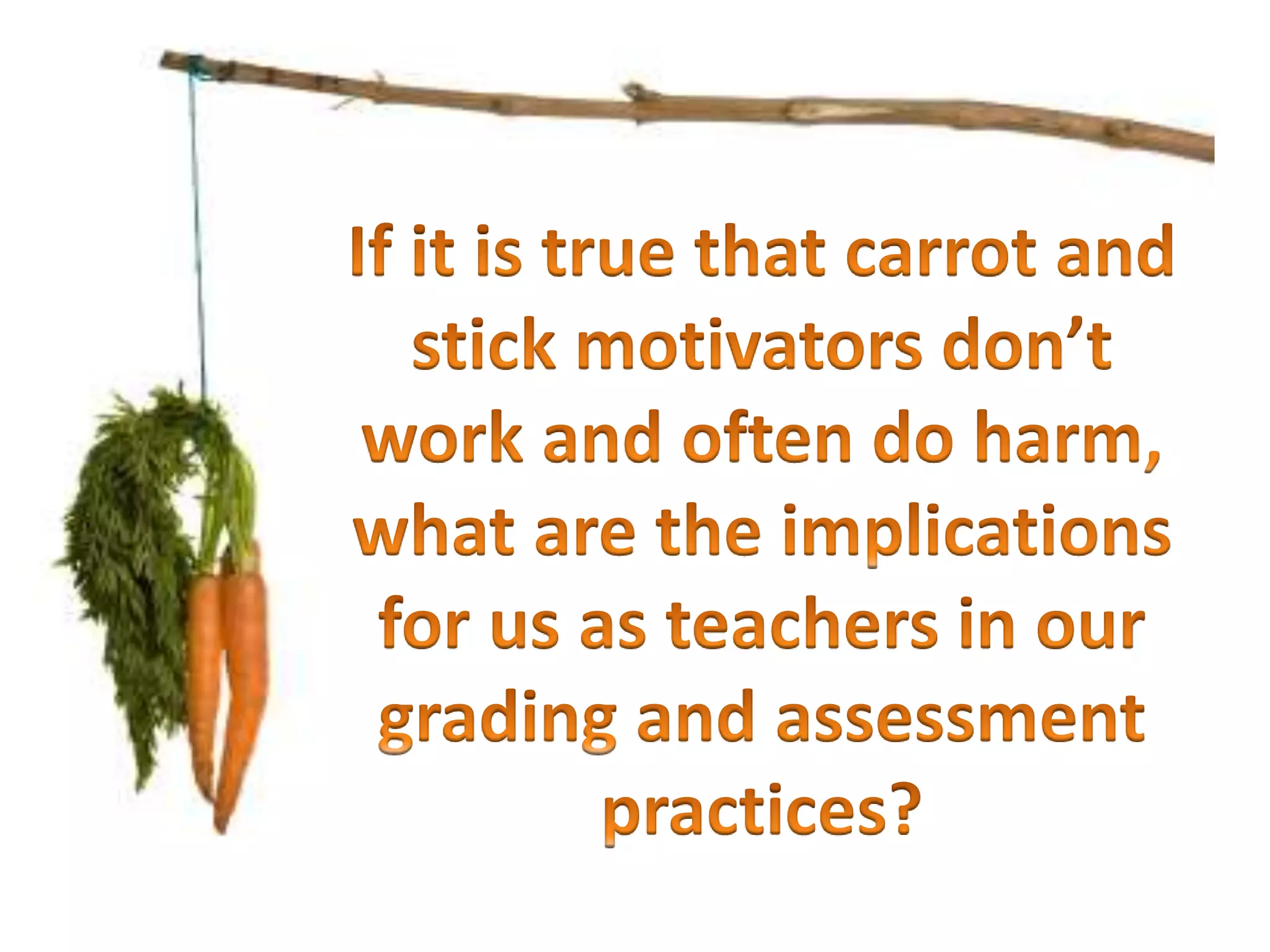 The document discusses the importance of formative assessment and moving away from traditional grading practices. It highlights research showing that intrinsic motivation is undermined by extrinsic rewards like grades. The presentation emphasizes using assessment to inform instruction and promote student ownership of learning.