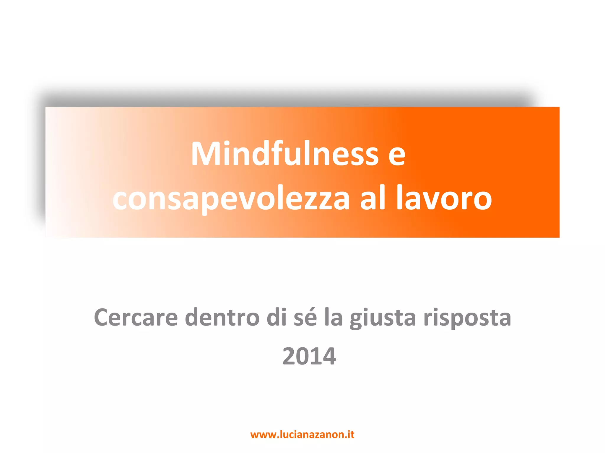 Il documento affronta l'importanza della mindfulness e della consapevolezza nel contesto lavorativo, evidenziando come la pressione e l'incertezza del mercato possano influenzare negativamente il benessere dei lavoratori. Viene suggerito che pratiche di mindfulness possono migliorare l'attenzione e la regolazione emotiva, contribuendo a trasformare negativi automatismi in risposte più consapevoli e funzionali. Il percorso proposto è personalizzabile e si adatta alle esigenze aziendali, con moduli che possono essere realizzati sia in gruppo che individualmente.