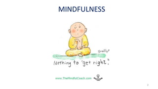 The document outlines mindfulness practices focusing on grounding, opening, and resting techniques to enhance emotional safety and well-being. It provides specific exercises for both sitting and standing, encourages reflection on personal experiences, and emphasizes the role of intention in mindfulness. The document concludes by summarizing key principles and benefits of mindfulness, alongside details for further training resources.