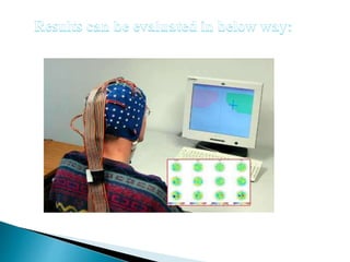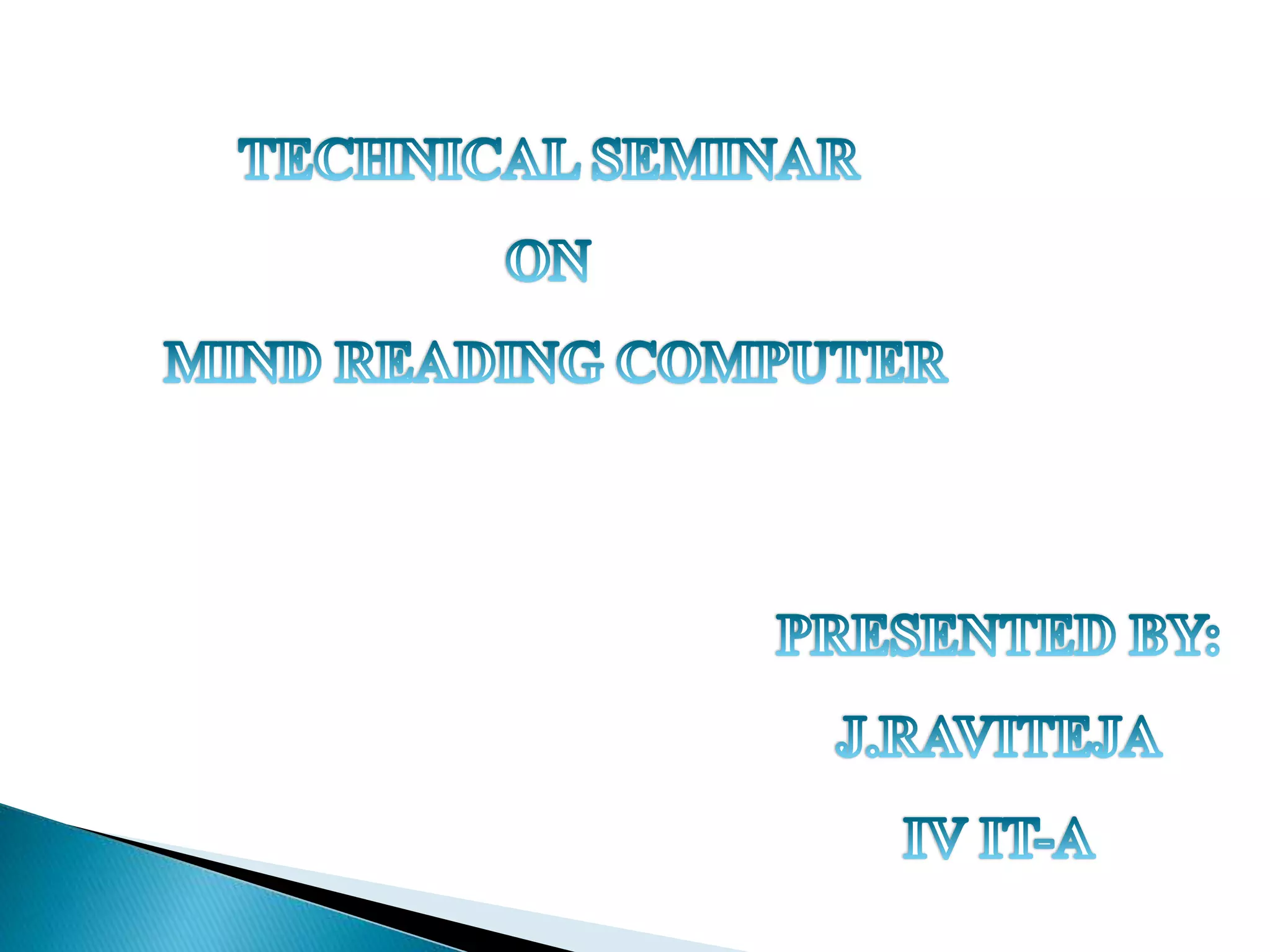This document discusses mind reading technology that uses sensors and algorithms to interpret a person's mental states from their facial expressions and brain activity in real time. It can infer emotions, thoughts and levels of concentration. The technology has potential advantages for human-computer interaction and assistive technologies but also raises issues regarding privacy, free will and predicting future behavior.