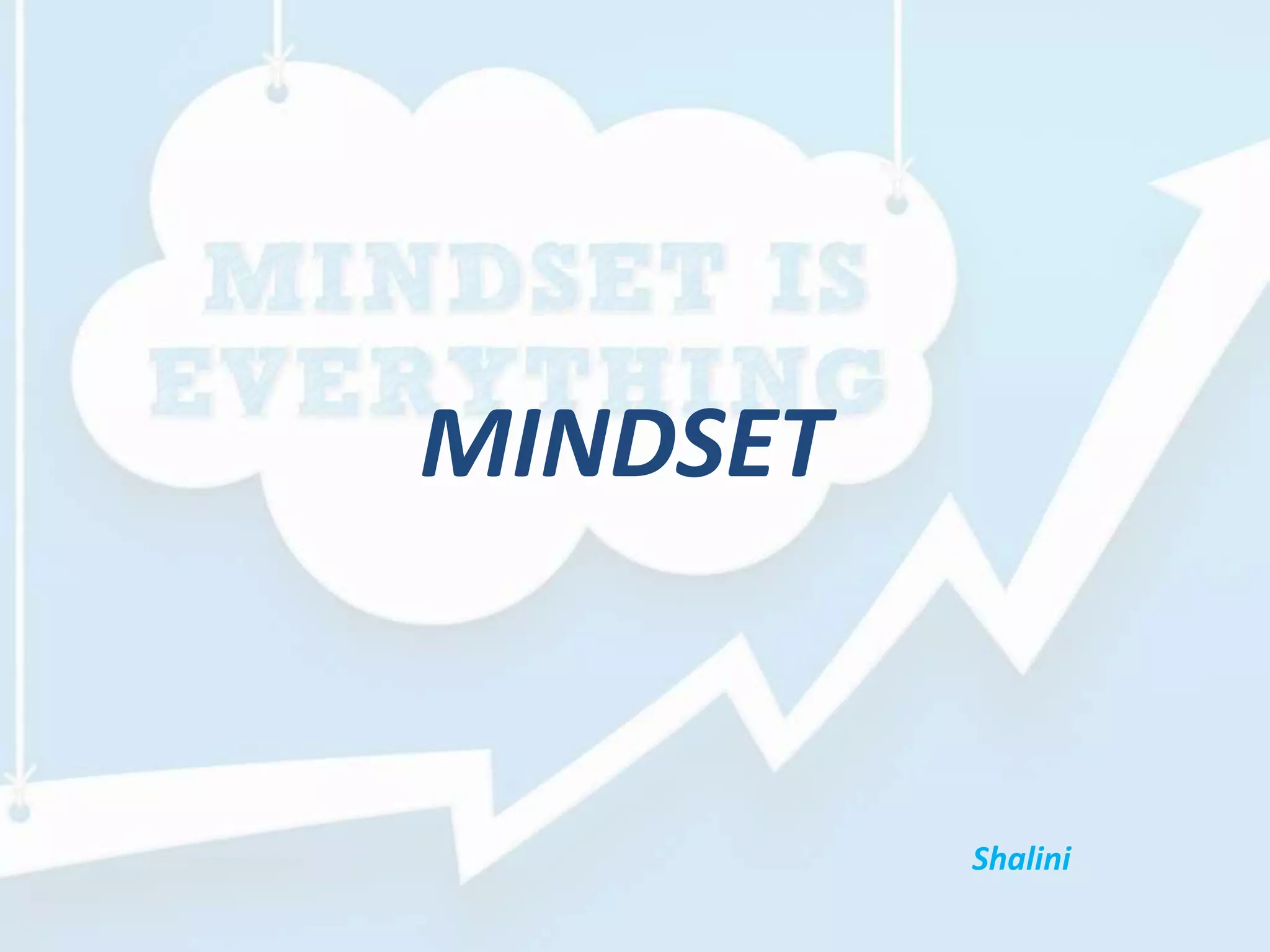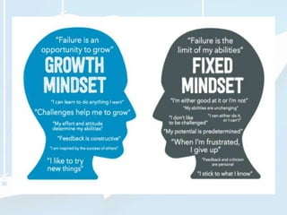 Mindset refers to the beliefs about whether qualities like intelligence and talent are fixed or changeable. There are two types of mindsets: a fixed mindset, where individuals believe their traits cannot change, and a growth mindset, where individuals believe they can improve through effort and experience. Cultivating a growth mindset is essential for building self-esteem, achieving success, and transforming weaknesses into strengths.
