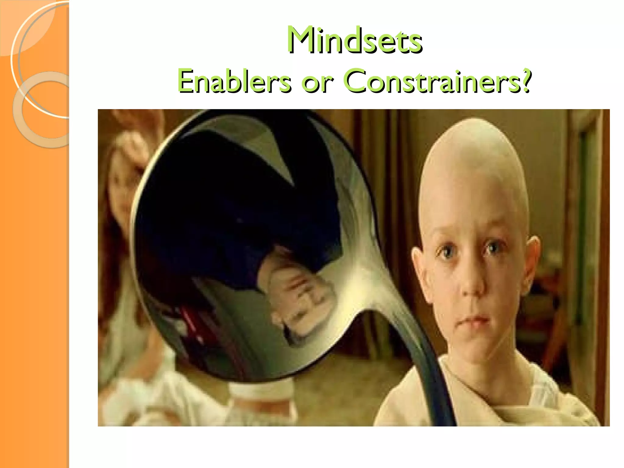 The document explores the concept of mindsets as either enablers or constraints, identifying mental blocks such as fear, assumptions, and biases that hinder problem-solving. It suggests strategies for breaking these barriers, including reframing problems, encouraging curiosity, and utilizing various thinking methods like brainstorming and mind mapping. The importance of perception and viewing problems from different angles is emphasized, alongside the impact of habits on behavior.